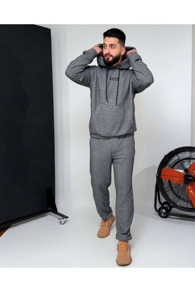 Зручний костюм:худі з капюшоном і кишенею-кенгуру,з декоративним елементом на грудях+штани на резинці зі шнурком-фіксатором і кишенями,з манжетами внизу.