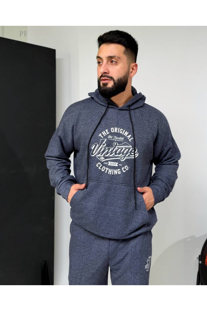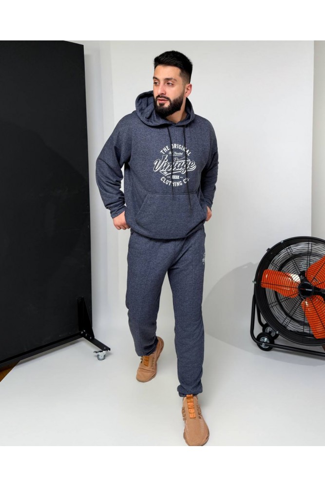 Зручний костюм:худі з капюшоном і кишенею-кенгуру,з декоративним елементом на грудях+штани на резинці зі шнурком-фіксатором і кишенями,з манжетами внизу.