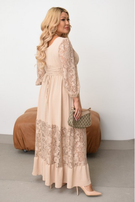 Елегантна комбінована максі-сукня із фактурної жатки та гіпюру. Ідеальний вибір для урочистих подій, романтичних вечорів чи стильних фото!