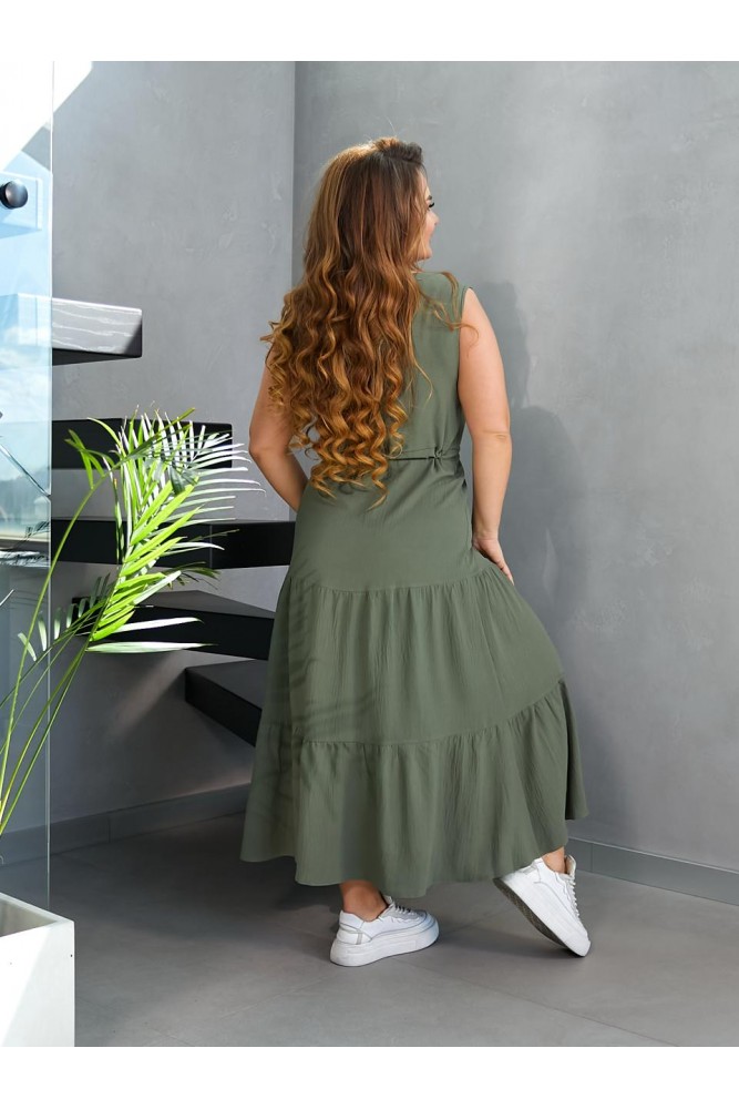 Сарафан А-силуету з куліскою на талії, застібається гудзиками, низ сукні із двох воланів