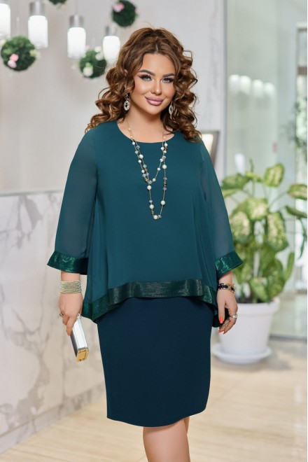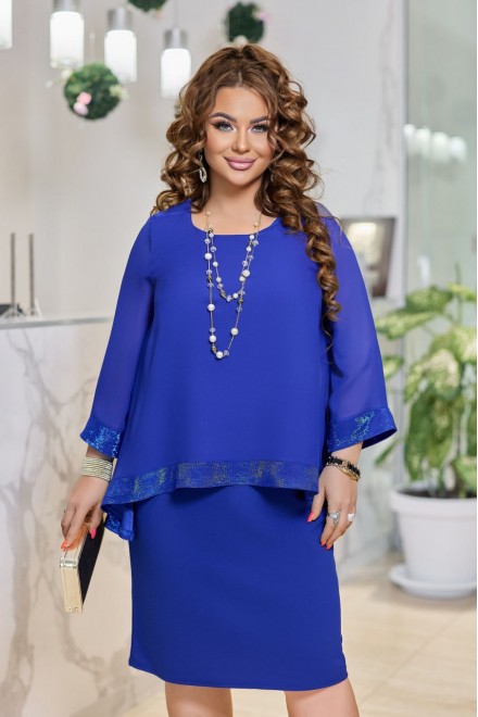 Розмір: 50-52, 54-56, 58-60. Колір: електрик, бордо, зелений, синій, чорний. Тканина: основа-креп дайвінг, шифон, паєтка. Сукня приталеного силуету, з округлою формою горловини, рукав цільнокроєний, довжиною ¾. Шикарна сукня дозволить своїй володарці виділитися з натовпу, привернути захоплені погляди та бути в центрі уваги на будь-якому заході! Виміри: РОЗМІР 50-52: Довжина сукні 105 см, рукав 48 см. ОГ-110 см. РОЗМІР 54-56: Довжина сукні 106 см, рукав 49 см. ОГ-118 см. РОЗМІР 58-60: Довжина сукні 107 см, рукав 48 см. ОГ-128 см.