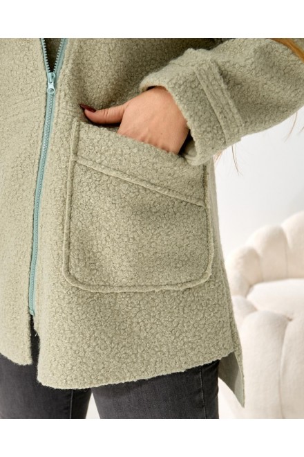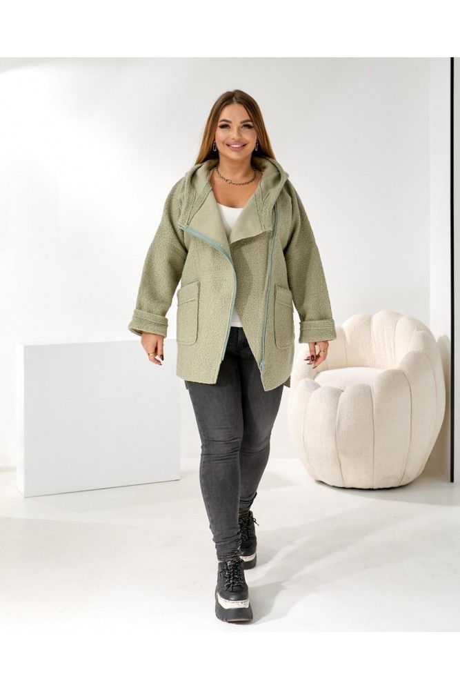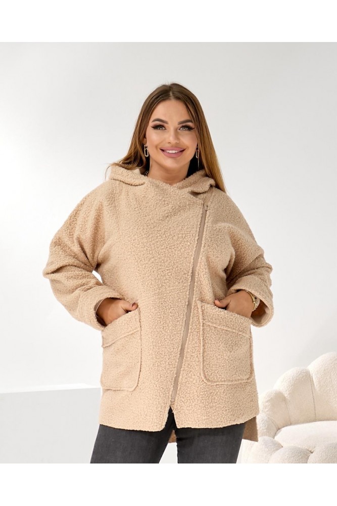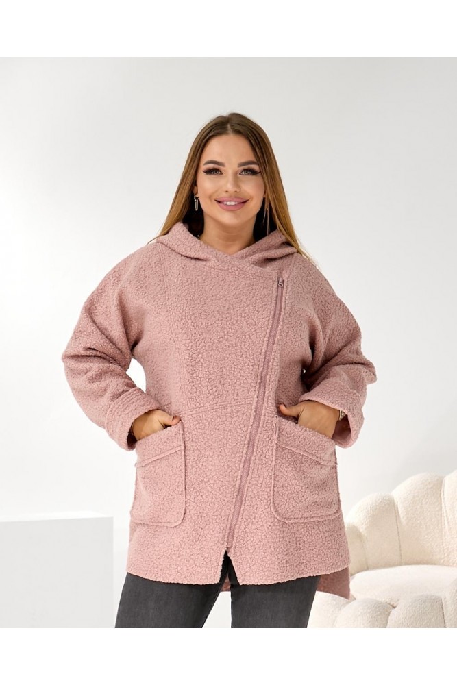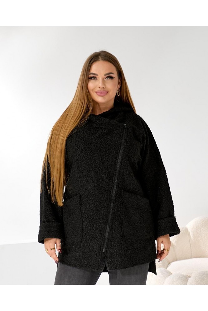Оверсайз фасон зі спущеним плечем та асиметричною косою застібкою-блискавкою створює сучасний та стильний образ.