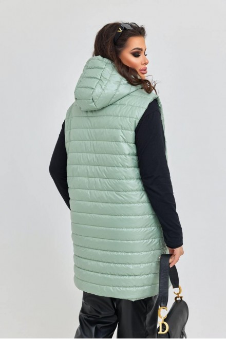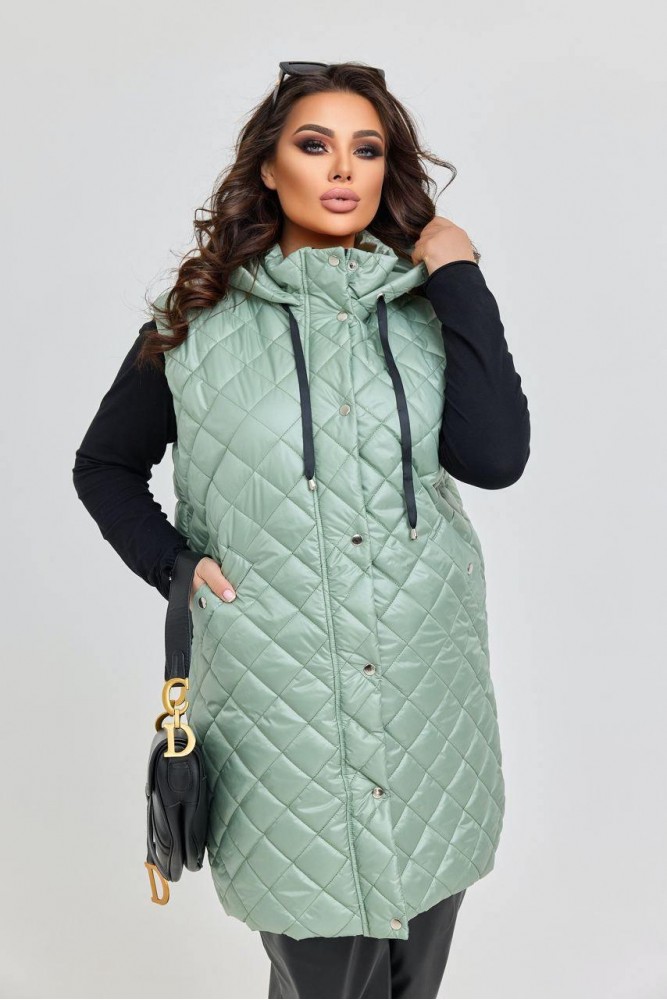 Оригінальне поєднання двох видів стібки. Перед виконаний зі стібки "Ромб", спинка зі стібки "Смужка". Вітрозахисна планка та прорізні кишені на кнопках. Капюшон затягується контрастним по кольору шнуром.