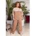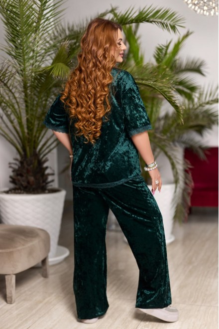 Стильний комплект ідеально впишеться у Ваш весняно-літній гардероб. Костюм вільного крою виконаний із велюру. Зручні вільні штани з поясом на резинці ідеально сидять на фігурі і візуально струнять та витягують фігуру. У бічних швах штанів виконані функціональні кишені. Блуза прямого силуету, вільного крою зі спущеним плечем. Модель ідеально підходить для активних прогулянок, подорожей чи відпочинку вдома.