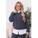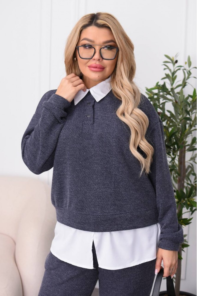 Кофта оригінального крою з ґудзиками ,виконана з вʼязаного трикотажу з додаванням білого супер софта на комірі та знизу з імітацією сорочки. .Штани на резинці з кишенями.