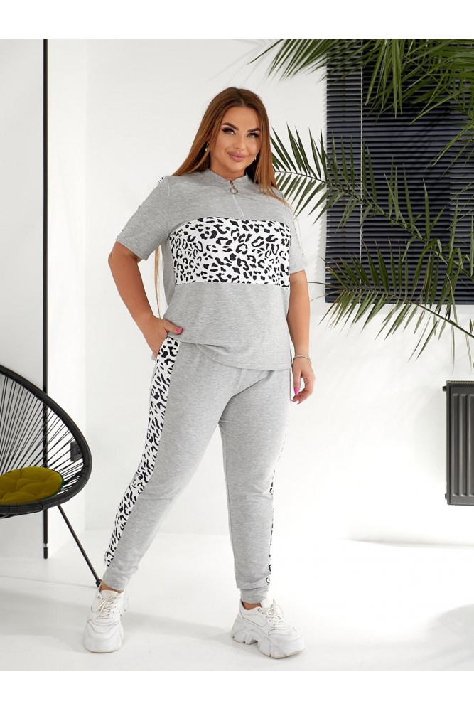 Яскравий прогулянковий костюм з використанням принтованих вставок "Леопард" і "Зебра. Кофта вільного крою з декоративною блискавкою на горловині. Штани з високою посадкою, талія на резинці, низ наманжетах.