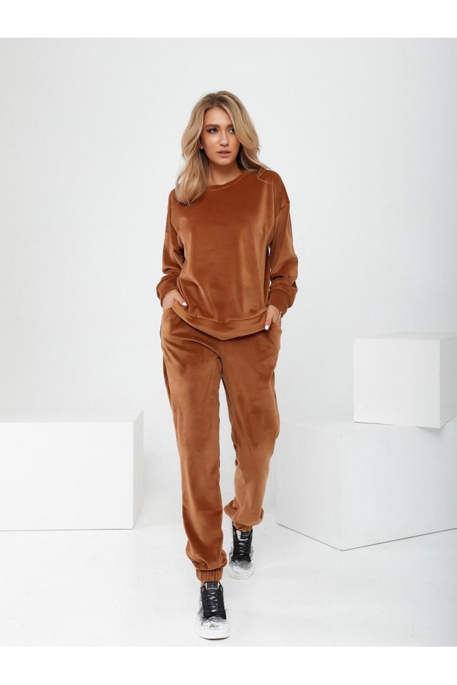 Мега стильний велюровий костюм на осінь. Кофта вільного крою без капюшона. Штани на резинці, 2-і кишені.
